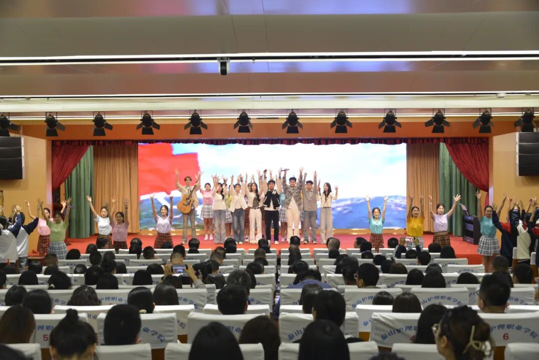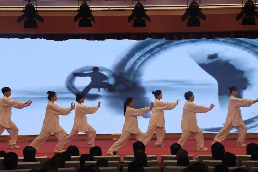 随后的节目展演精彩纷呈,健美操展现青春活力,合唱传递爱国情怀,太极拳弘扬传统文化,朗诵抒发师生心声,格斗表演彰显安保风采,赢得师生阵阵掌声。
